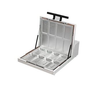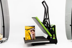 - 转印:使用匹配模具,预热20分钟以后,将需转印的产品放置到夹具上,并放上打印好的菲林膜(注意:图案朝向产品面),并快速合上机器上盖。