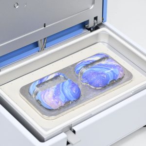 热升华技术是一种将热升华墨水中的分散染料在高温(130℃-140℃)下从固态转化为气态并渗透到材料表面的工艺,冷却固化后图案与壳体融为一体,不易脱落或磨损,同时支持高分辨率照片和复杂色彩的印制,满足个性化需求。
